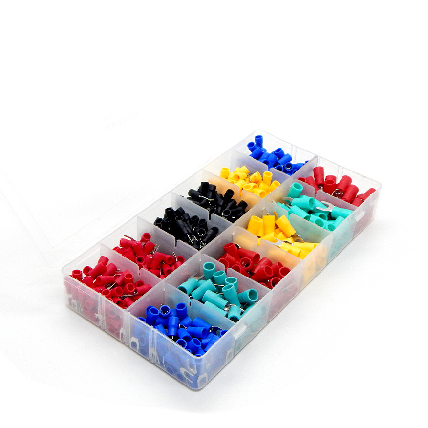 Набір вилкових, штирових наконечників у компактному органайзері з кількістю 520 шт. Усі вилочні наконечники мають ізолятори на клемах.